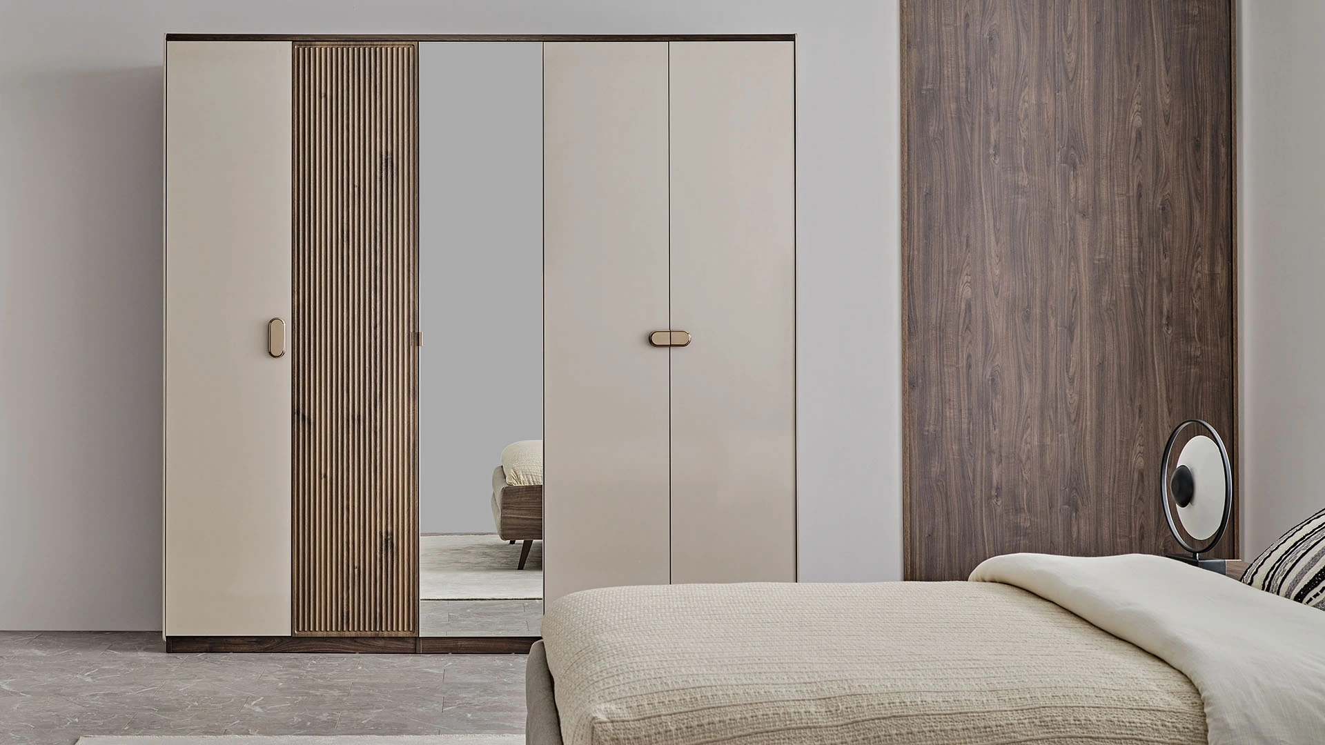 Bend 5 kapaklı dolap, yatak odanız için ihtiyaç duyduğunuz depolama alanını sağlarken aynı zamanda dekorasyonunuzu da tamamlıyor. Zarif ve ince detayları ile romantik, yalın bir şıklık sunan Bend koleksiyonunda yer alan ürün, kullanışlı iç tasarımı ile birlikte aradığınız her şeyi bir arada sunuyor.