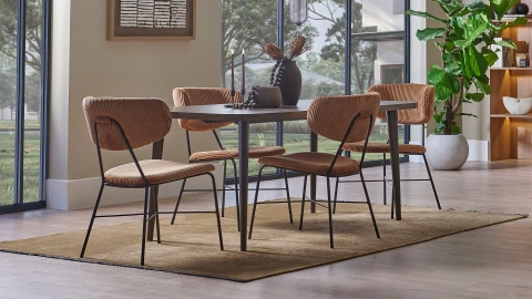 CALISTA Sandalye, hem koleksiyonda yer alan masalarla hem de farklı masa modelleriyle kolayca uyum sağlayacak bir tarza sahip. Krem rengi minderi ve metal ayaklarıyla görünümünü tamamlayan bu sandalye, oldukça modern bir seçim. CALISTA Sandalye'nin sırt bölümünün altında yer alan pencere detayı, görünümüne ekstra hareket kazandırıyor. Rahat oturma ve sırt minderleriise uzun süreli kullanımlara bile hitap ediyor.