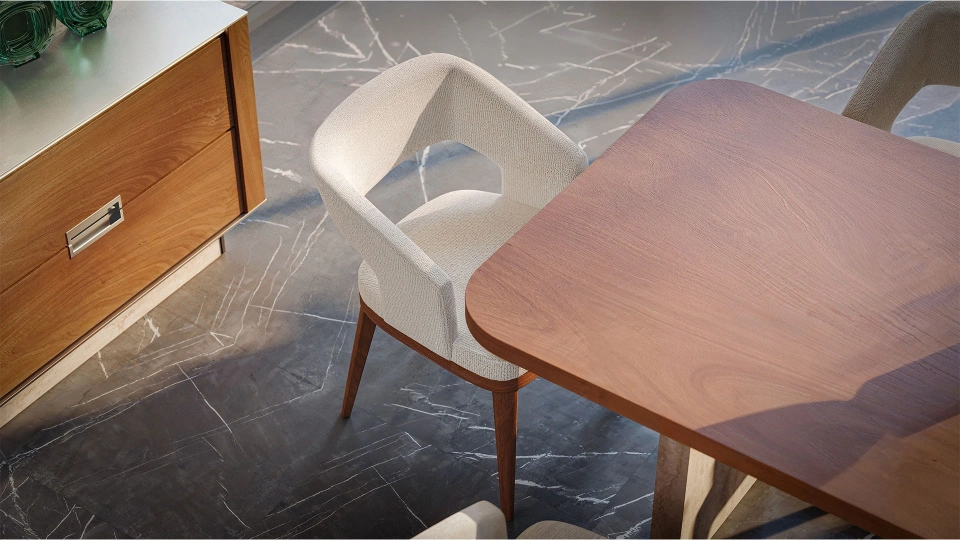 Your dream dining room comes to life with the Moderna Dining Room Set. The set includes options for extendable and foldable dining tables, chair models, console, and display cabinet among many other pieces. This way, depending on the size of your dining room, you can create your set with the pieces you desire. Designed with the harmony of walnut tones and marble, the Moderna Dining Room Set is the top choice for those who want to create a modern living space!