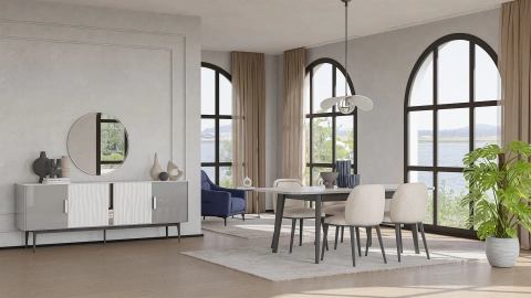Glen Orma Konsol, zarafeti ve fonksiyonelliği bir araya getiren şık bir parça. Yemek odanıza yenilik kazandıran bu konsol, saf beyaz rengiyle beğeni kazanıyor. Siyah detaylı kulpları ve metal ayakları ise ürünün tasarımına kontrast kazandırıyor. Geniş iç hacmi, düzenli bir yemek odası için ihtiyaç duyduğunuz her şeyi saklamanıza olanak tanıyor. Dört kapaklı tasarımıyla dikkat çeken Glen Orma Konsol, oturma odasında dekoratif objelerle kullanmak için de uygun. Montaj kılavuzu için tıklayınız