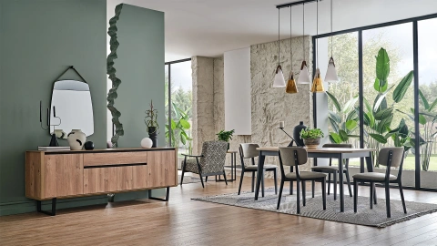 Çekmeceli yemek odası konsol modelleri en özel gümüş çatal bıçak takımlarınızı saklamak adına gümüşlük olarak kullanılabilir. Bunun yanı sıra peçete, masa örtüsü gibi yemek masası düzeni için gerekli parçaları da çekmeceli konsollarda saklayarak ihtiyaç duyduğunuzda kullanıma hazır bir şekilde, rahatça bulabilirsiniz. Öte yandan, geniş hazneli dolaplara sahip konsollar, porselen yemek takımlarınızı ve fincan takımlarınızı güvenli bir şekilde muhafaza etmek için ideal bir alan oluşturur.