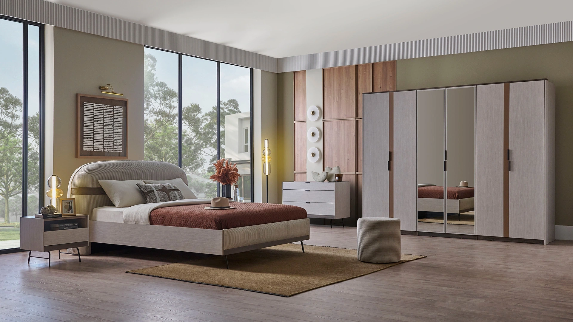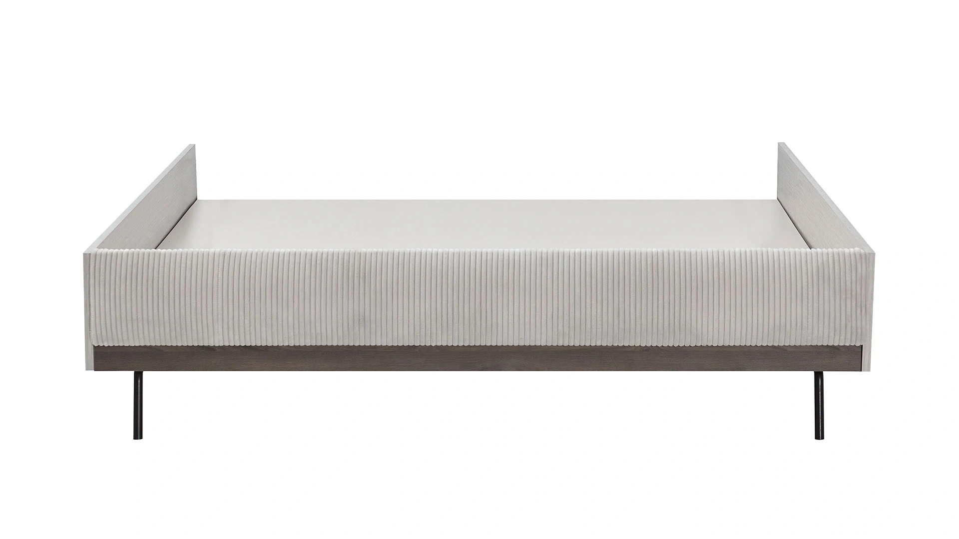 Huzurlu ve rahat bir yatak odası tasarlamak istiyorsanız tek ihtiyacınız LEA Karyola. 160 cm genişliğindeki bu karyola, yatak odanızı son derece konforlu göstermeye yetiyor. Karyolanın alt kısmındaki çizgili kumaş, görünümüne ekstra hareket kazandırırken yan taraflardaki ahşap detaylar ise doğal görünümü destekliyor. Karyolanın metal ayakları, modern bir tarzı beraberinde getiriyor. Açık rengiyle göz yormayan bu tasarım, açık ve koyu detayların kontrastıyla hayalinizdeki dekorasyon tarzını ortaya koyuyor.