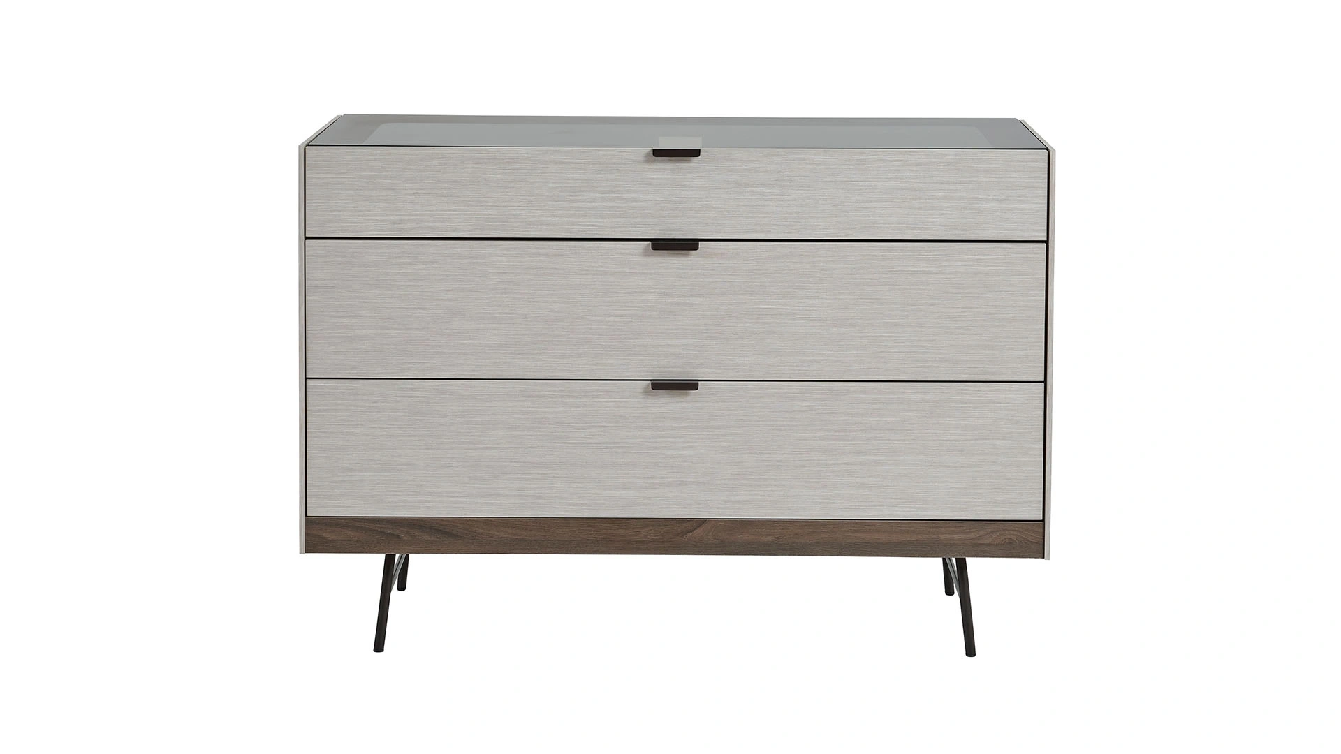Yatak odanızda ve giyinme odanızda kullanabileceğiniz LEA Geniş Şifonyer, etraftaki dağınıklıkları kaldırmak ve eşyaları düzene koymak için birebir. 2 derin, 1 de sığ toplam 3 çekmeceye sahip olan bu şifonyere iç çamaşırı, pijama, bebek kıyafeti, nevresim takımı gibi tüm tekstil eşyalarınızı yerleştirebilirsiniz. Metal ayaklarıyla görünümünü modernleştiren LEA Geniş Şifonyer, alt kısmındaki koyu renk parça ve açık krem rengiyle kontrast oluşturuyor.