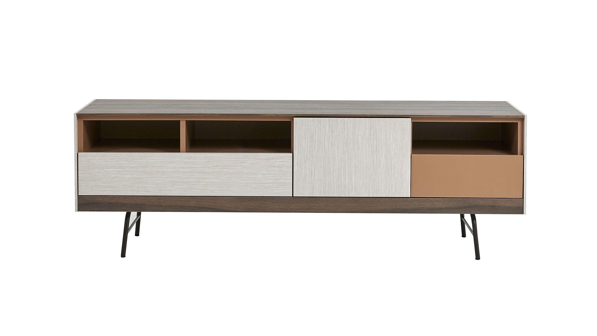 150 cm genişliğindeki LEA TV Ünitesi Alt Modülü, televizyonunuzu yerleştirmeniz için ideal alan sunuyor. Bu modül, iki çekmeceye ve bir de kapaklı bölüme sahip. Çekmecelerin üst kısmında ise üç adet açık raf yer alıyor. Modülün açık raflarına kitaplarınızı ya da mum gibi dekoratif eşyalarınızı yerleştirebilirsiniz. Kapaklı bölümler ise günlük olarak ihtiyaç duyduğunuz ama görünürde olmasını istemediğiniz eşyaları saklamak için ideal alan yaratıyor. Açık ve koyu olmak üzere farklı sıcak renk tonlarından oluşan bu ünite, oldukça modern görünüm oluşturuyor.