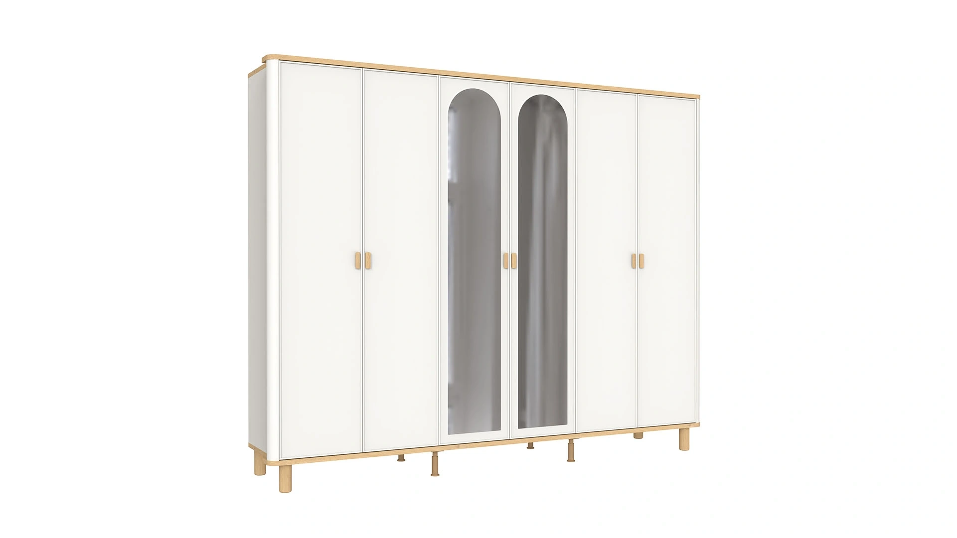 İki adet aynalı ve dört adet de düz kapağıyla yatak odası ve giyinme odası dekorasyonunuzu tamamlayan LEGNA 6 Kapaklı Dolap, ferah bir atmosferi beraberinde getiriyor. LEGNA 6 Kapaklı Dolap, dört adet askılığa sahip. Aynı zamanda alt ve üst raflarıyla kıyafetlerinizi düzen içerisinde yerleştirmenize olanak tanıyor. Açık renk kapakları ve ahşap rengi alt ve üst detaylarıyla dikkatleri üzerine çeken LEGNA 6 Kapaklı Dolap, farklı dekorasyon stillerine kolayca uyum sağlıyor. Aynı zamanda bu dolap, yerden yüksek ayak tasarımıyla alt kısmın temizliğini kolaylaştırıyor.