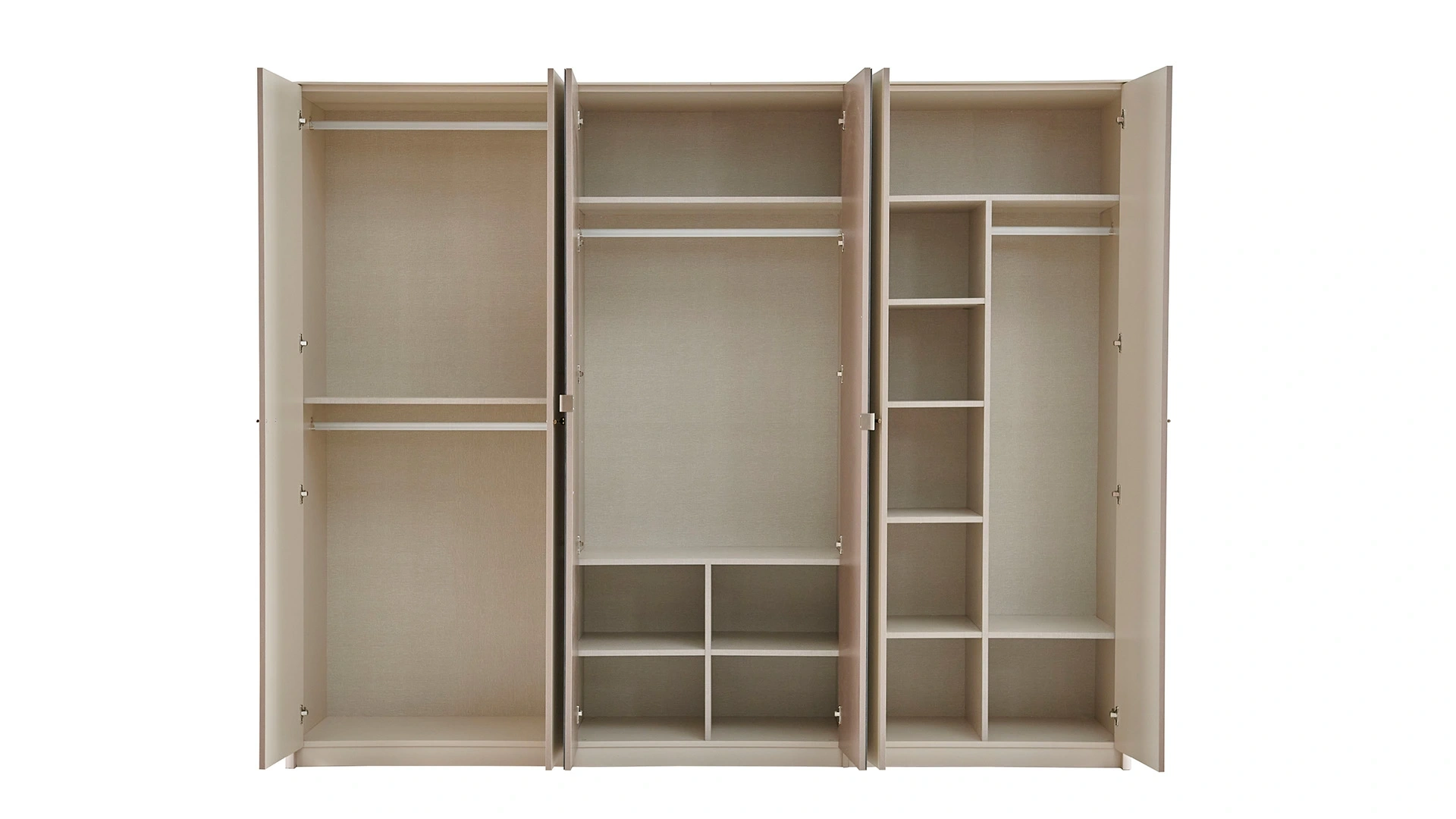 Kıyafetleriniz, aksesuarlarınız ya da ev tekstil ürünleriniz için geniş ve şık bir depolama alanı arıyorsanız Nicole 6 kapaklı dolap tam size göre. Geniş boy aynası, farklı boyutlardaki raf ve askı alanları ve zarif detayları ile öne çıkan dolabı satın alarak yatak odası dekorasyonunuzu tamamlayabilirsiniz.