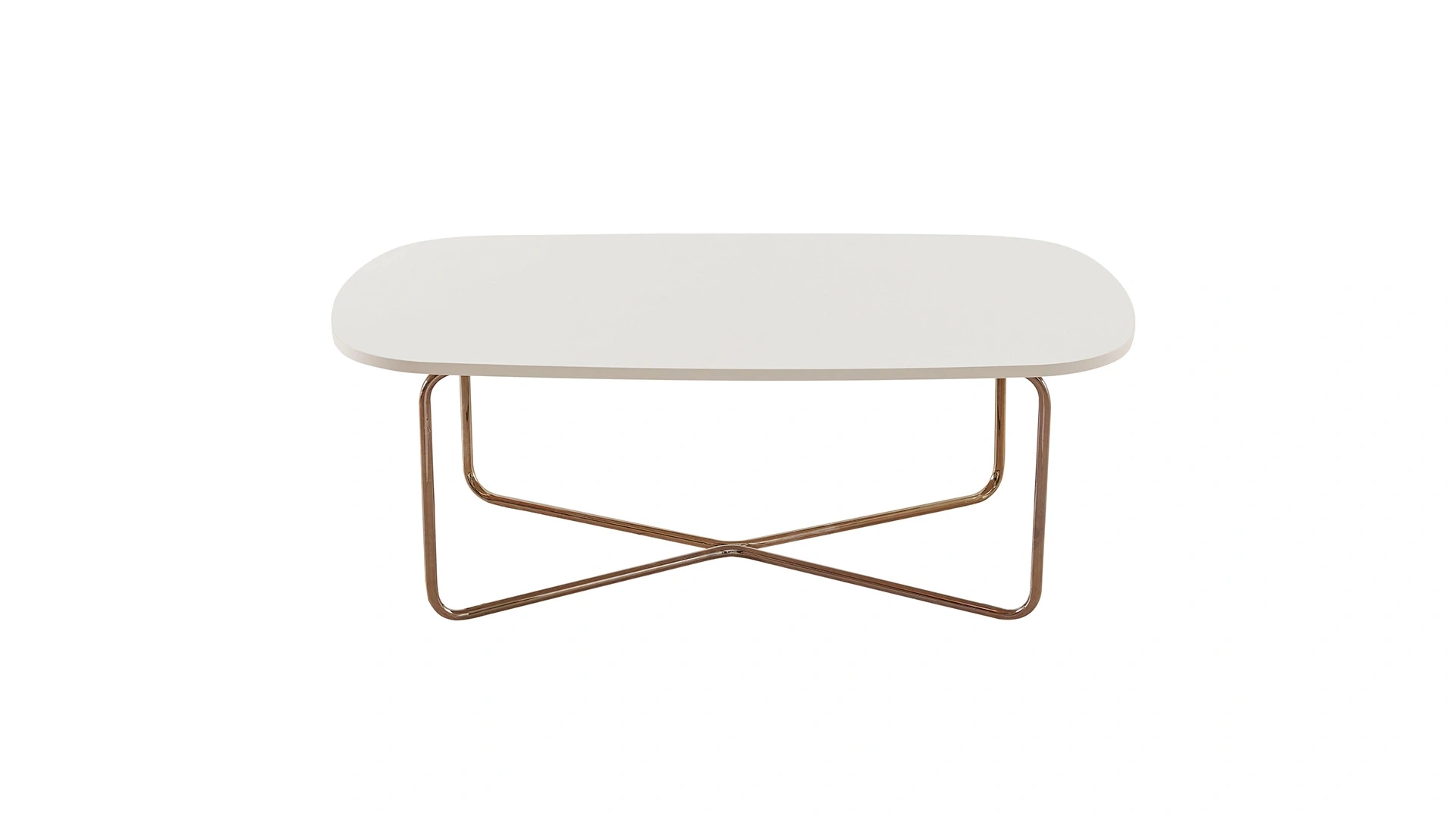 Doğtaş orta sehpa, modern ve yenilikçi tarzıyla yaşam alanlarınızın merkezindeki yerini alıyor. Bronz renkli, çapraz metal ayakları ve krem renkli oval üst yüzeyi ile aydınlık bir görünüm de sunan sehpa Nicole gül kurusu puf ile ya da tek başına satın alabilirsiniz.