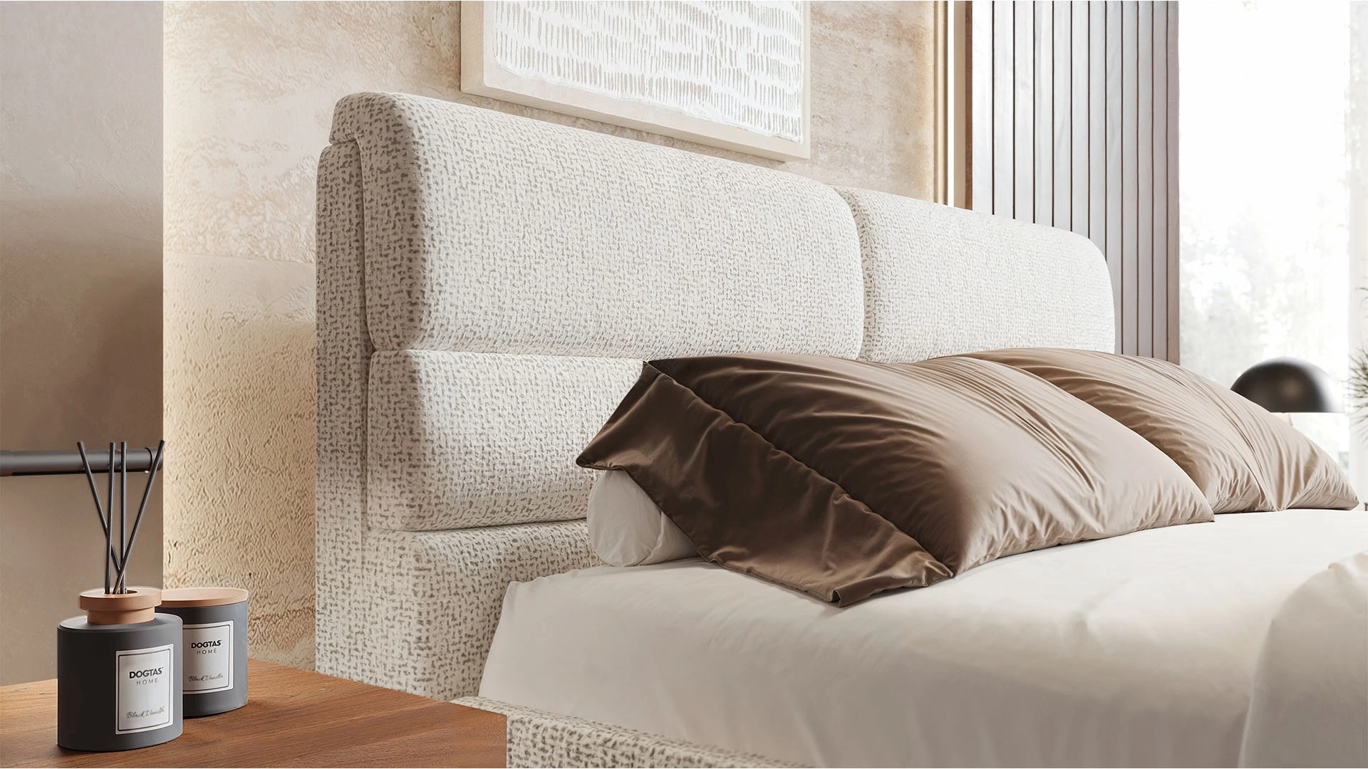 Doğal dokularla yatak odanıza sıcak ve ferah bir görünüm kazandırmak ister misiniz? Cevabınız evetse Moderna Başlık tam size göre! 180 cm ölçüdeki bu başlık, geniş yatak sevenler için birebir. Konfor açısından sağladığı avantajın yanı sıra Moderna Başlık içerisinde koyu geçişler barındıran krem tonlu kumaşıyla beğeni kazanıyor. Tekdüzeliği kıran bu tasarım detayını başlıktaki dikişler tamamlıyor. Ceviz tonlarında mobilyalarla kolayca kombinleyebileceğiniz Moderta 180 cm Başlık ile siz de yatak odanızı hayalinizdeki gibi dekore edebilirsiniz.