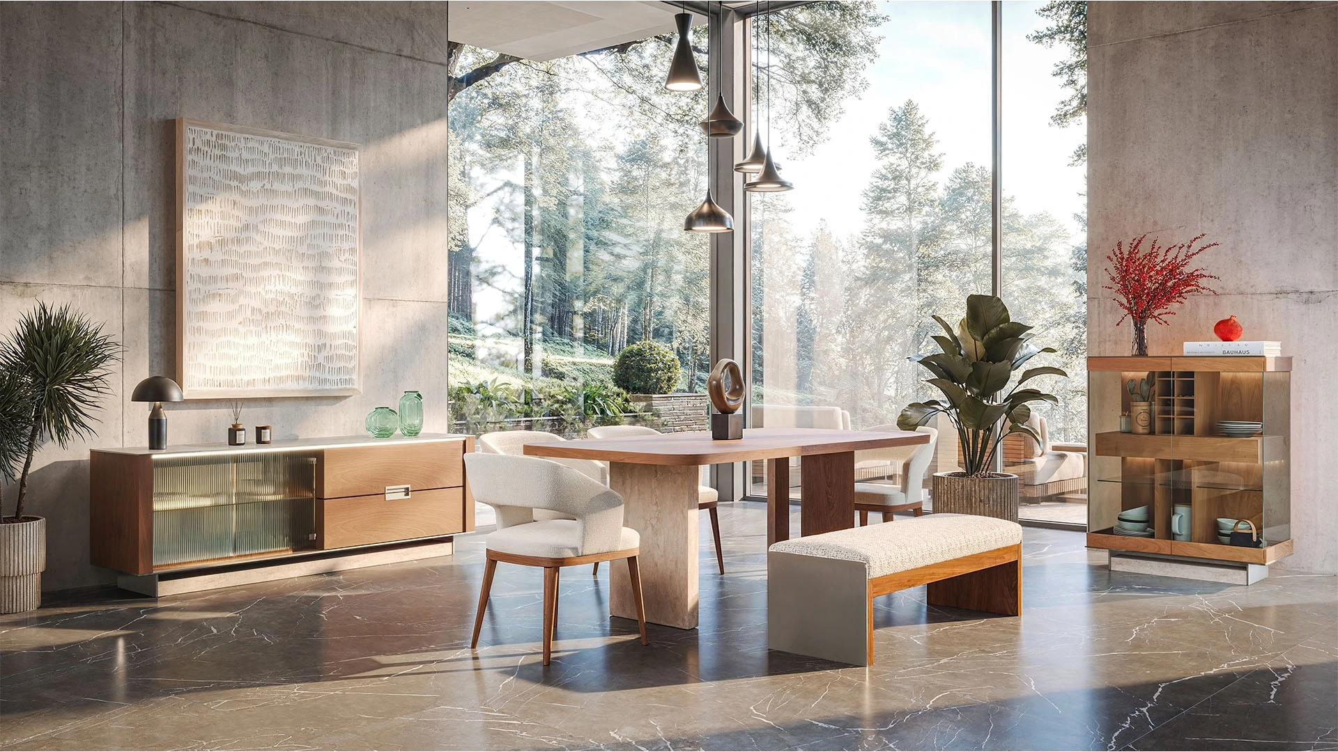 Ceviz renginin sıcaklığı ve modern detaylarıyla Moderna Konsol, yemek odanızı yeniden şekillendiriyor. Sağ kısımda yer alan geniş çekmeceler sofra düzeniniz için pek çok eşyanızı saklamanıza olanak tanıyor. Cam kapaklı bölüm ise dekoratif eşyalarınızı sergilemeniz için birebir. Ürünün ayak kısmındaki mermer detayı, çok daha şık bir görünüm sağlıyor. Moderna'nın diğer parçalarıyla da son derece uyumlu olan bu konsol, modern yaşam alanı oluşturmak isteyenlerin tercihi.