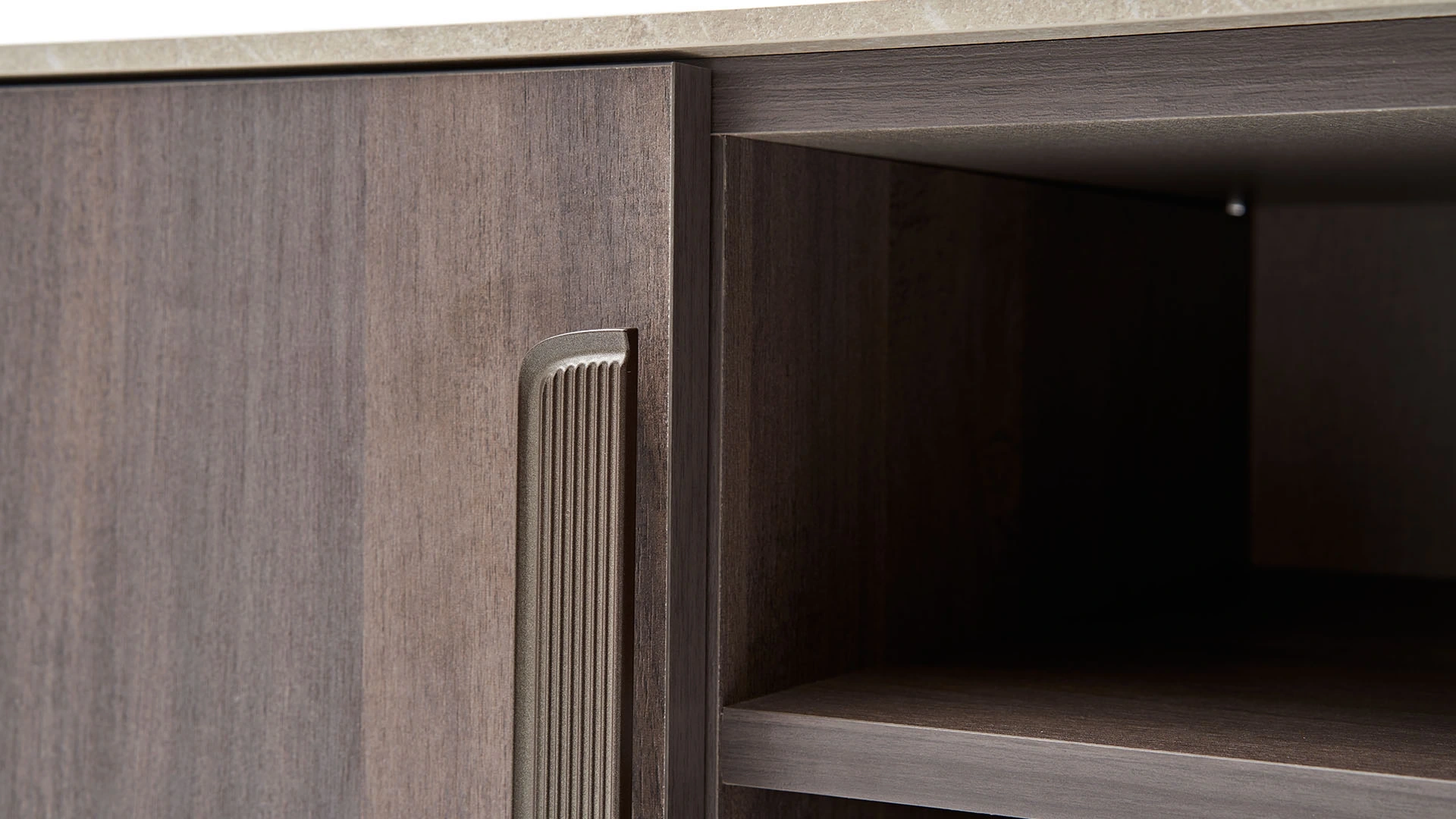 Ceviz ahşabın doğal, sıcak ve güçlü görünümünü yansıtan Piero TV ünitesinin alt modülü, kapalı depolama alanları ve geniş sergileme alanları ile mekanlarınızın dekorasyonunu tamamlıyor. Modern kulp ve ayak detayları ile öne çıkan alt modülü, Piero TV ünitesinin diğer modülleriyle birlikte satın alabilirsiniz.