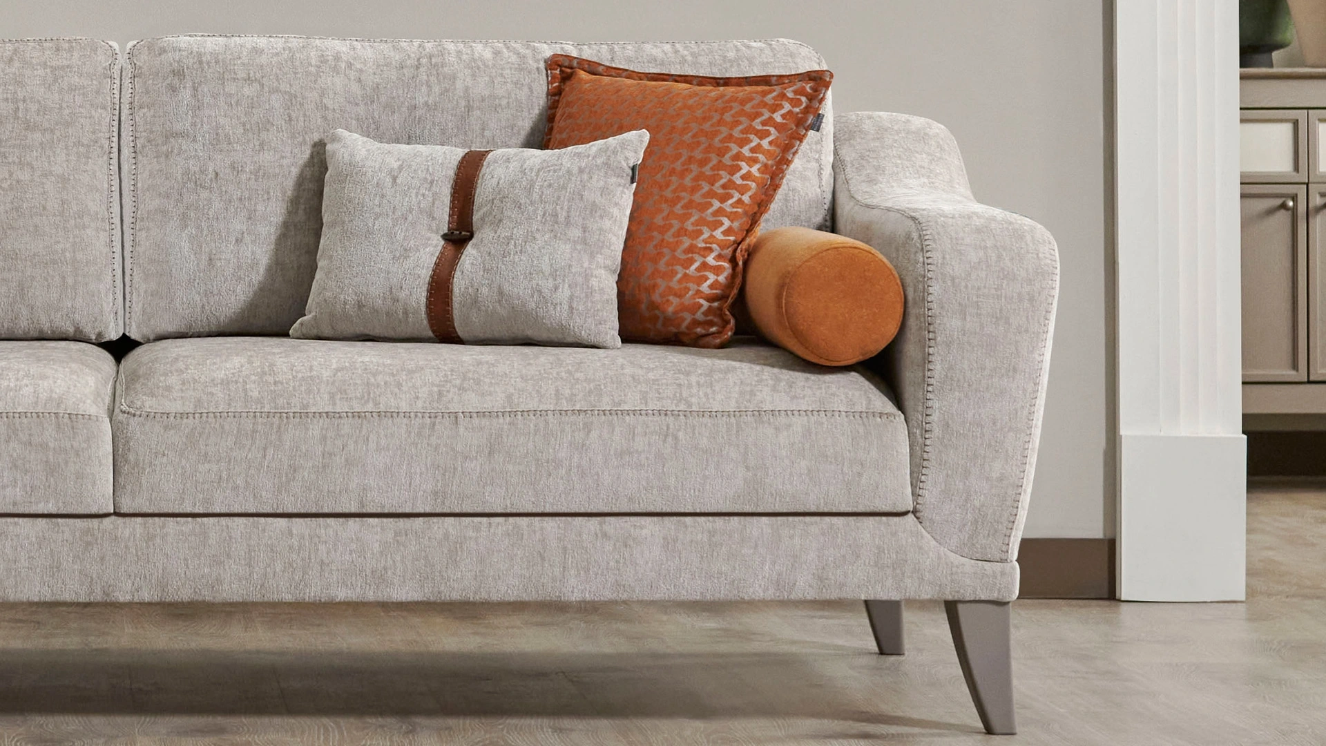 Savana üçlü koltuk, zarif ve şık tarzı ile yaşam alanlarınızın görünümünü tamamlıyor. Konforlu ve şık bir oturma odası ya da salon hayal edenlerin beklentilerini karşılayan koltuk, açık renkli tasarımı ile mekana aydınlık bir görünüm katıyor. Siz de özel bir mekan tasarlamak için Savana üçlü koltuğu satın alabilirsiniz.