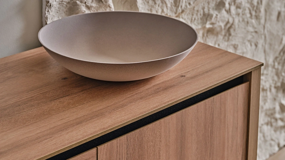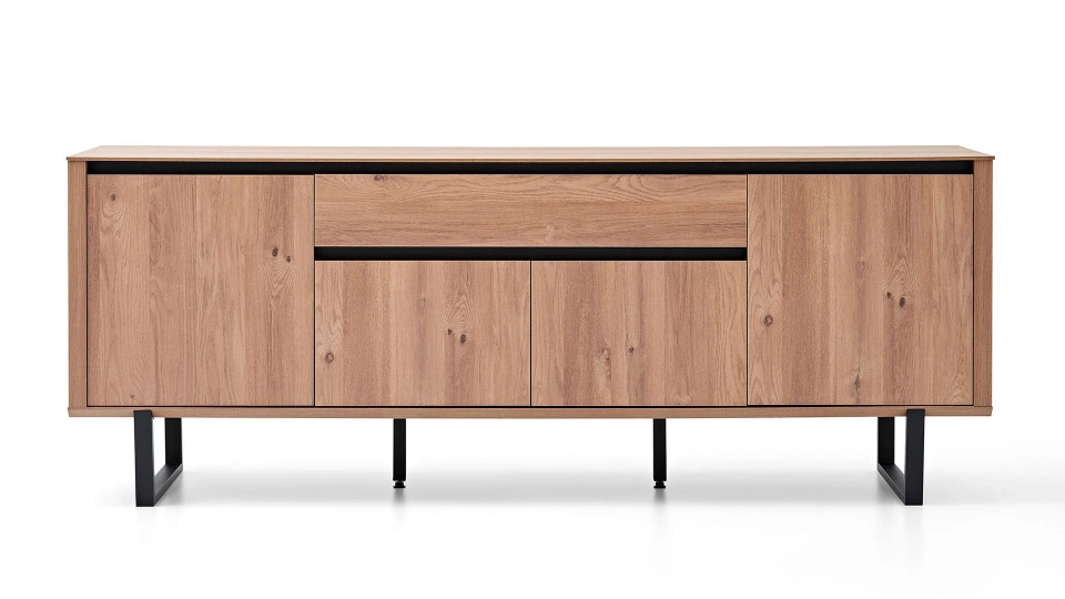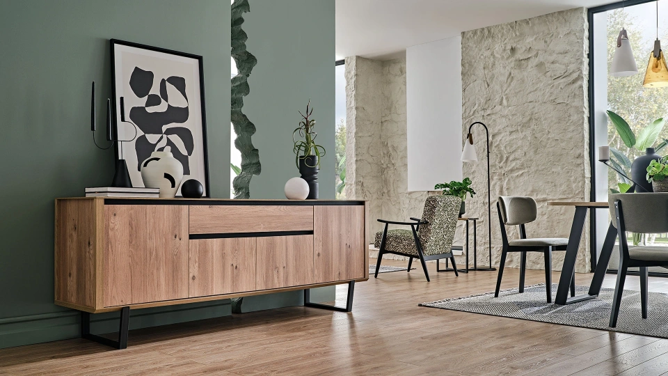 Varna renkli ahşabın doğallığını metalin güçlü duruşu ile birleştiren Solid yemek odası takımı, fonksiyonelliği ve şık tasarımı ile mekanınızı güzelleştiriyor. Ürün grubu; kulpsuz dolapları, yüksek ayakları ve yalın hatları ile ince bir zevki yansıtıyor.