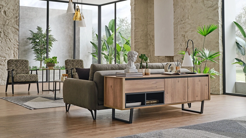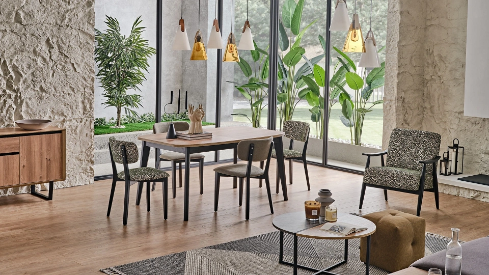 Açılabilir yemek masası seçeneği ile geniş ailelere de hitap eden Solid yemek odası, her bir detayı ile minimal ve sade bir dekorasyon anlayışını yansıtıyor. Geniş bir depolama alanı sunan konsolu, geniş ve modern tarzdaki yemek masası, özgün tasarıma sahip aynaları, şık desenleriyle öne çıkan sandalyeleri ile yaşam alanınıza bambaşka bir ruh katacak ürün grubunu Solid koleksiyonundaki farklı modüller ile kombinleyebilirsiniz. Orta sehpadan TV ünitesine, dresuardan banka çeşitli ürünler ile takımınızı zenginleştirebilirsiniz.