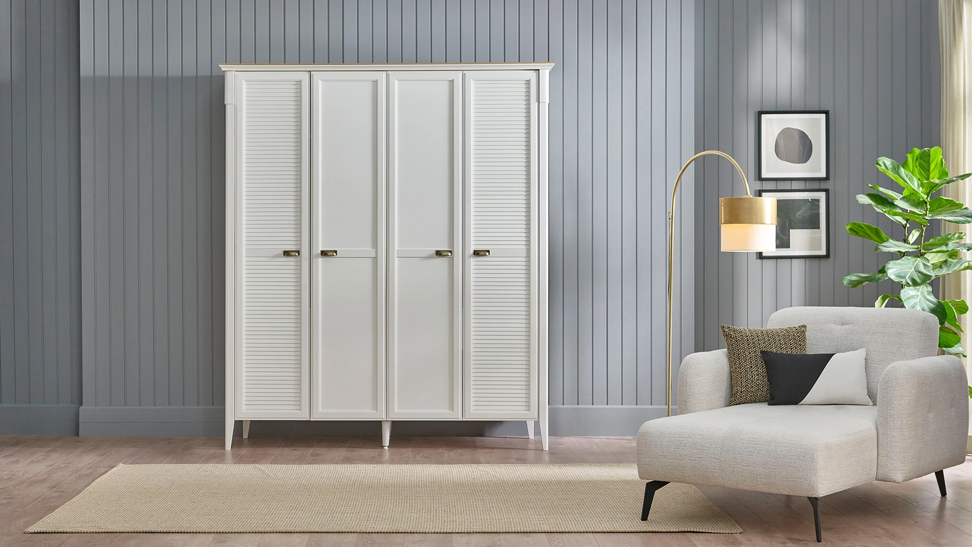 Country tarzdan ilham alınarak tasarlanmış Toscana koleksiyonunda yer alan Toscana 4 kapaklı dolap, aytaşı rengi ile yatak odalarına aydınlık ve şık bir görünüm kazandırıyor. Kapaklarında bulunan panjur detayları ve eskitme altın rengi kulplarıyla nostaljik görünümünü tamamlayan ürünü tek başına ya da Toscana koleksiyonundaki ürünler ile birlikte satın alabilirsiniz.