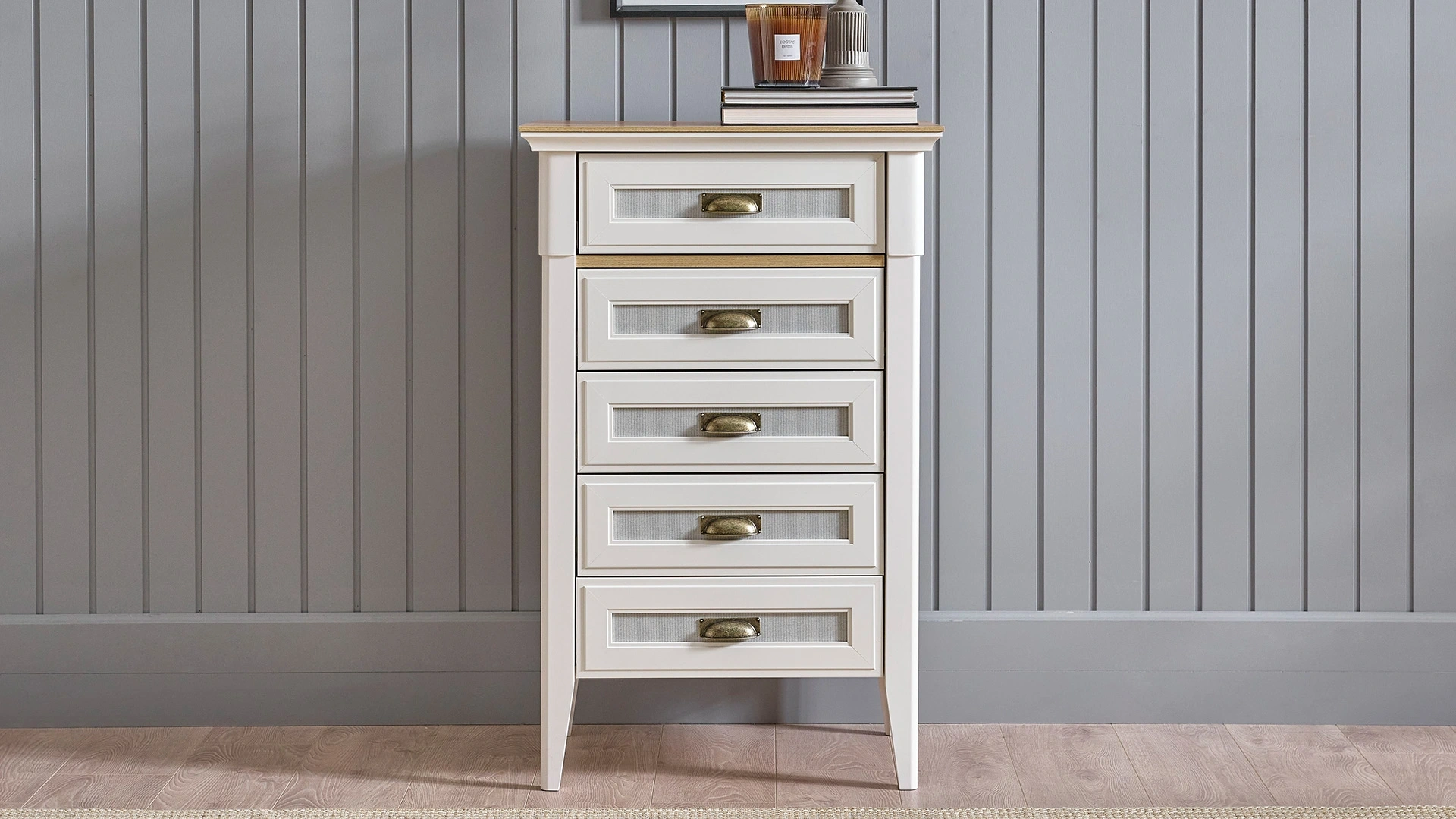 Toscana yatak odası mobilyaları arasında yer alan Toscana 5 çekmeceli yüksek şifonyer, şık tasarımıyla yatak odanızdaki yerini alıyor. Dar ve yüksek tasarımı sayesinde alandan tasarruf etmenize yardımcı olan, Country tarzı yansıtan görünümü ile dekorasyonunuzu güzelleştiren ürünü hemen şimdi satın alabilirsiniz.