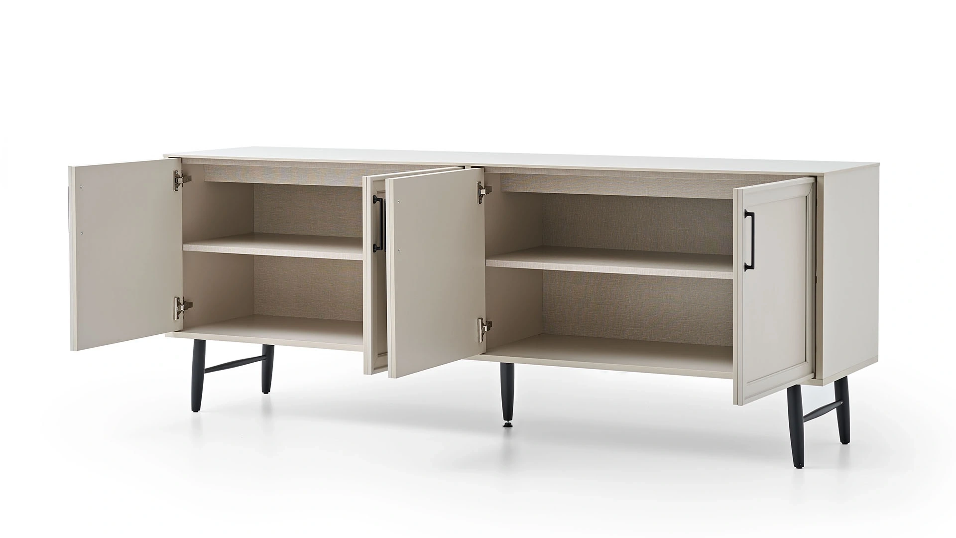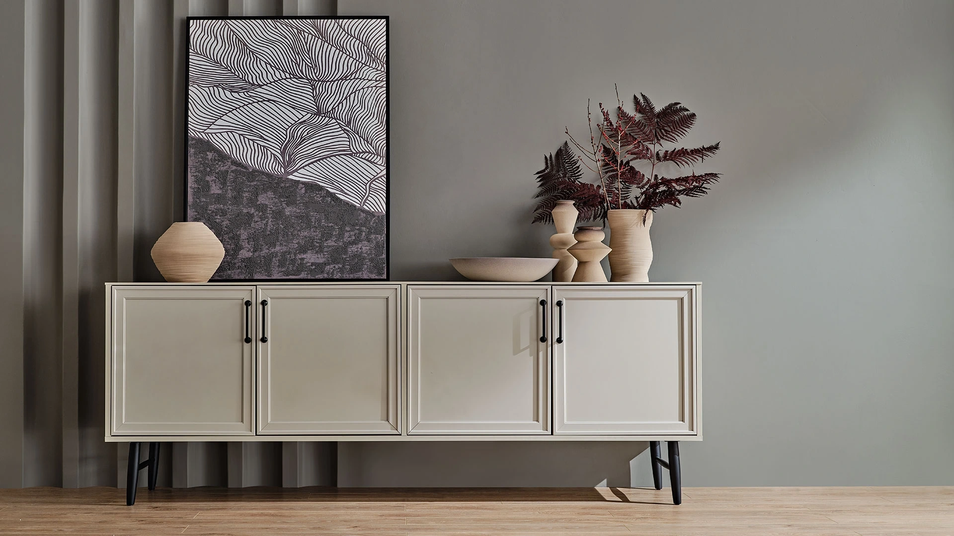 Trento konsol ile yemek odalarınız için ihtiyaç duyduğunuz şık depolama alanına kavuşun. 4 kapaklı, geniş konsol ile yemek takımlarınız ya da servis araçlarınızı depolayabilir, en sevdiğiniz objeleri ise konsolun üst yüzeyinde sergileyebilirsiniz. Kusursuz bir uyum yakalamak için ürünü Trento koleksiyonundaki diğer mobilyalar ile satın alabilirsiniz.